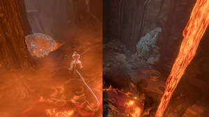 - Use the Forge Lever on the southern side of the platform to lower it into to the lava