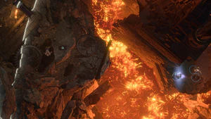 - Once the platform is lowered, use the Lava Valve to fill the area with lava