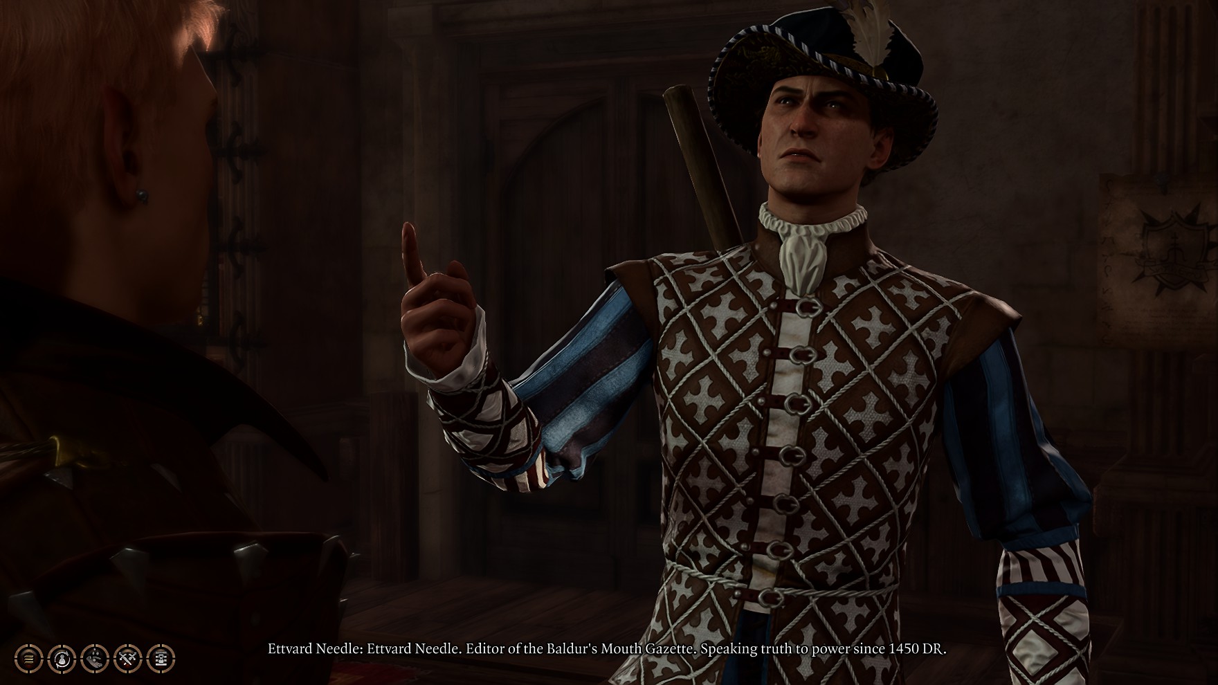 Stop the Presses We met a journalist, Estra Stir, who told us we're set to star in the next edition of the Baldur's Mouth Gazette. We should find out why.