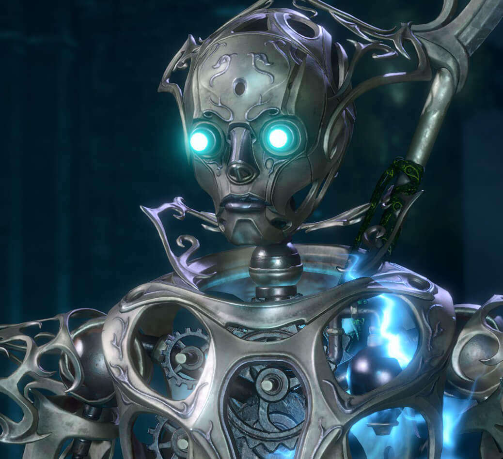 Bernard is the Construct guardian of the Arcane Tower in the Underdark. Created by the tower's owner, Lenore De Hurst, Bernard was designed for both protection and companionship.