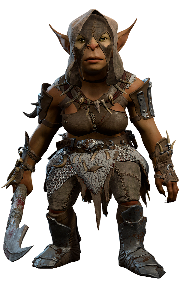 Brawler Birka is a goblin stationed in the Goblin Camp in Act One.