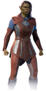 Drow Studded Leather Armour in game female.png 290 × 599; 485 KB