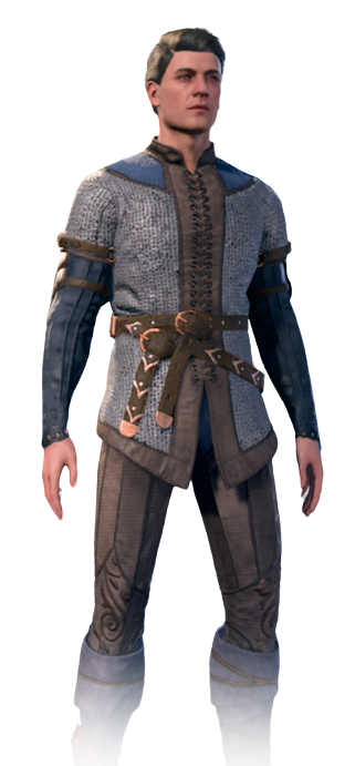 - Mace, Chain Shirt, Studded Shield, Leather Boots