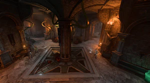 The Chamber itself has a sunken area in the center. On its bottom lies the Planecaster which is activated immediately after resolving the dialogue with Ch'r'ai W'wargaz, whatever its outcome.