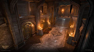 The Classroom is an area north of the main corridor of the Crèche, opposite to the antechamber. Here the githyanki youths and children are instructed and educated by Sa'varsh KethkSa'varsh Kethk. The room has a sunken area in the center, working as a sparring ground, surrounded by small stairs, and a small gallery along the north wall, partly separated by curtains.
