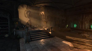 The Entrance hall (antechamber) is an area right next to the Monastery Basement Entrance to the Crèche. It is separated from the rest part of the Crèche by Heavy Oak Doors. Inside the antechamber is a sentry patrol consisting of Gish Far'aagGish Far'aag, Warrior KhunaruthWarrior Khunaruth and Raider Ra'gurRaider Ra'gur, who stands at the upper ground to the left from the entrance, and also Ardent Lin'a'anArdent Lin'a'an, a member or Inquisitor's retinue.