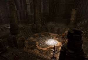 The Defiled Temple is a secluded part of the Shattered Sanctum of the former Selûnite temple. Since goblins have turned the temple into their camp, the Defiled Temple serves as Priestess Gut's personal chambers. It can be accessed through several points: