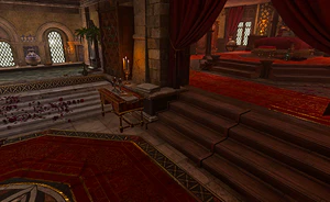 If Kith'rak Voss is still alive, he can be found inside the room trying to bargain with the devil, but to no avail - in Raphael's opinion, the gith knight has no chance to deliver him his long-craved prize. When the party enters the room, Raphael sends Voss away and continues the conversation with the player character. His proposal initiates or progresses the quest Deal with the Devil. For the length of their negotiations Raphael also blocks the Emperor's ability to read the player character's mind and communicate with them.