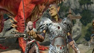 The githyanki patrol X: 101 Y: 555 can be encountered west across the Risen Road. They are arguing with a group of Flaming Fists. Suddenly, a red dragon comes down from the sky and sets the fists aflame. If Lae'zel is in the party, she notes that the crèche must be near and goes to meet with the patrol. The player character must go with her (though other party members can also go) to start a conversation with the dragon's rider, Kith'rak Voss.