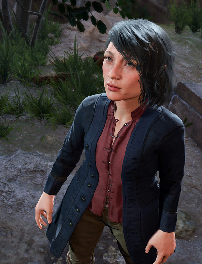 Drana and her companion Filson Vago are both stopped at a fork in the road discussing whether or not they should ask for directions. They are looking for the Facemaker's Boutique but are currently in the opposite part of town.