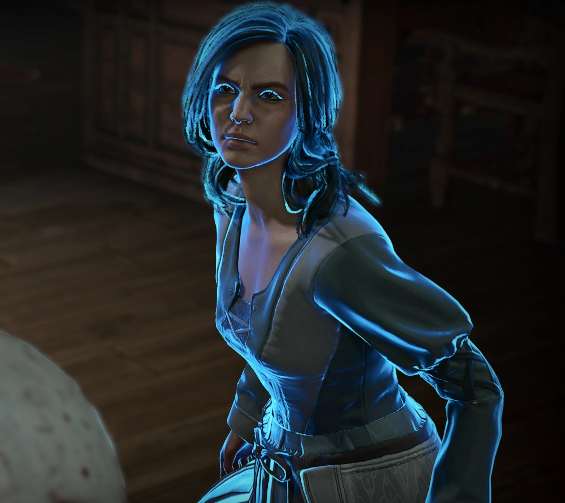 If the party chose to persuade or intimidate her instead of fight, then she becomes confused and starts to wonder why she is here in the first place. Oskar desires to know why she committed suicide and the party can either choose to let her leave or explain using Persuasion or Intimidation checks.