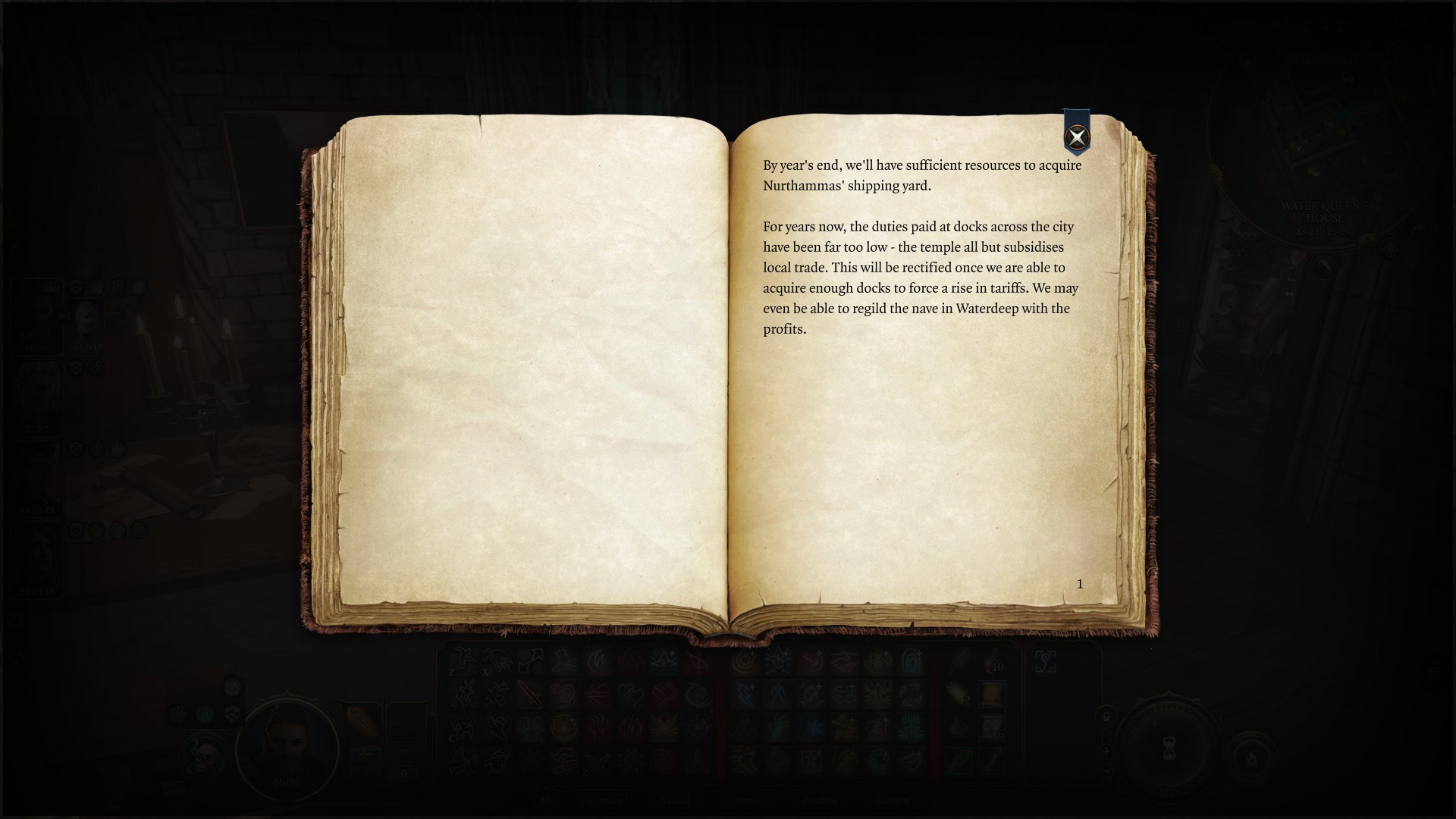 Screenshot of source describing economic intrigue that the Water Queen's house uses to try and gain control of docks in Baldur's Gate