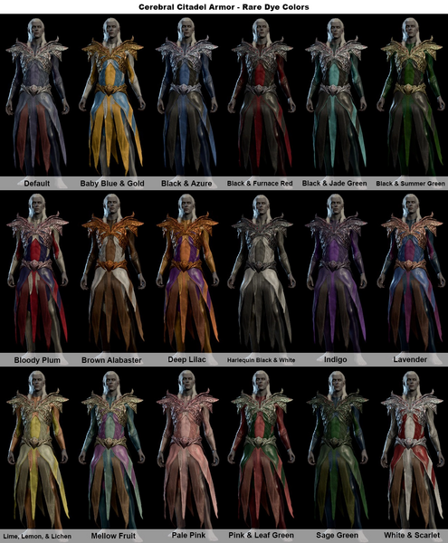 Cerebral Citadel Armor in all rare dye colors