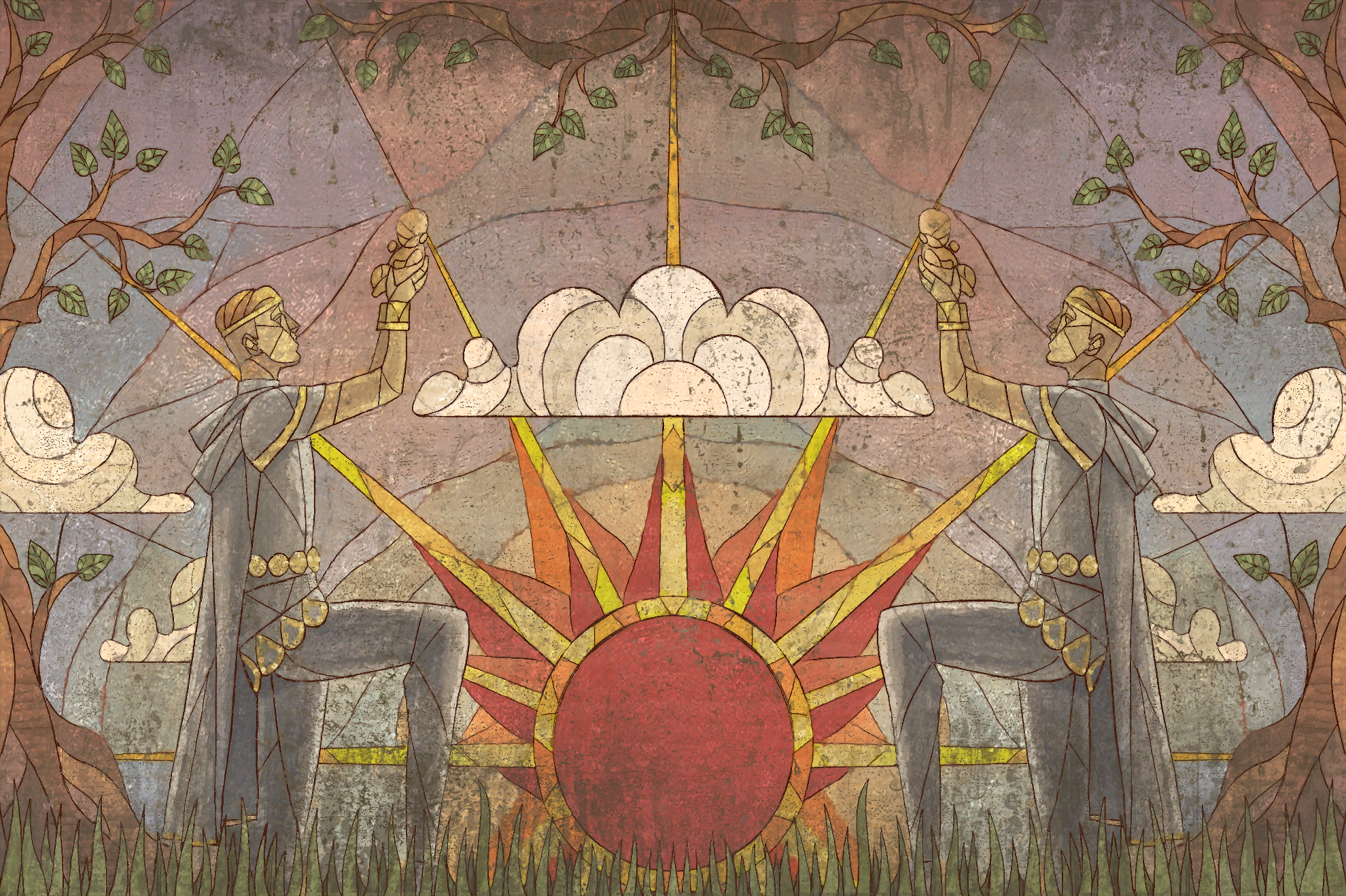 Cropped version of File:Rosymorn Monastery Lathander Mural.png