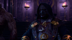 Once inside the Gauntlet of Shar, Balthazar's minions can be encountered, which triggers a combat with some Dark Justiciars of Shar. After the fight, Balthazar can be found in a room behind a big circular door. He introduces himself as a servant of Ketheric Thorm and that he is here to retrieve the Nightsong. He presses the party into helping him.