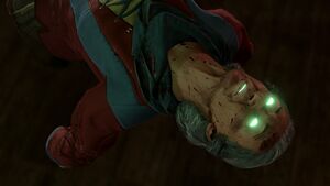 Her body has a key on her, as well as a note. The key opens up Ffion's Chest on the floor below the secret room (X:-16, Y:76).