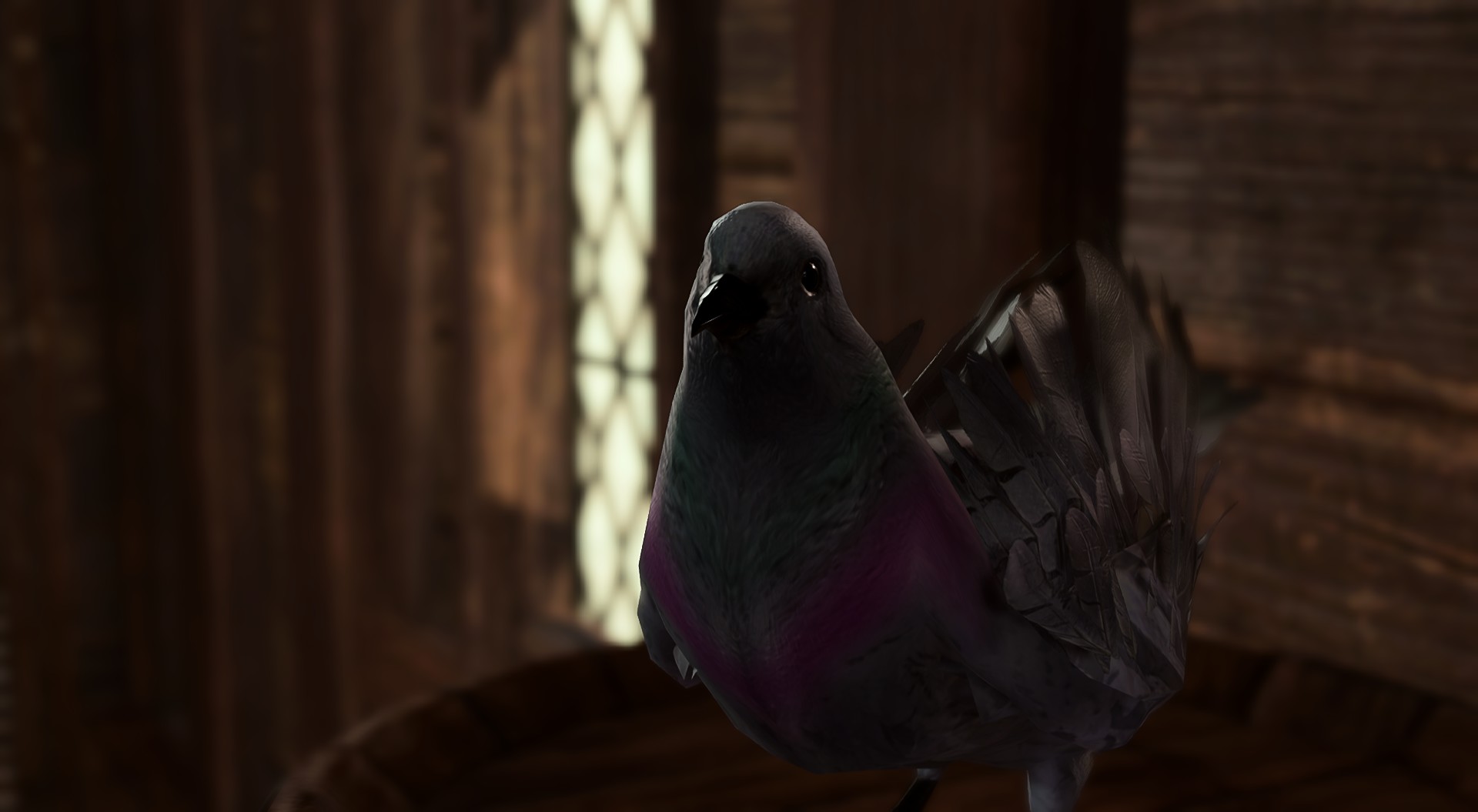 Using Speak with Animals, the surviving pigeons can be spoken to for information. They are on the upper level of the back room of the Posthouse at X: 27 Y: 14. The "leader" of the pigeons, Commander Lightfeather, tells the party what he knows of where the pigeons are going missing. He cautions that intelligence on the source of the missing pigeons is in short supply, but their enemies flanked them "on the west side, not one rooftop away."