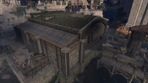 The basement can be accessed either through a hatch inside the warehouse or a very messy path up from the Lower City Sewers. The basement hatch is highly obscured by boxes and crates, and is located in the northwestern corner of the warehouse ground floor.