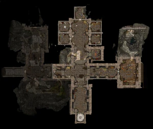 Despite the entrance to The Wyrmway being in this location, it is not possible to keep Florrick in the party while running the related quest; she proceeds through the puzzle entrance but refuses at the first door after it ("Now is not the time for exploring"). She can, however, be left waiting at that location.