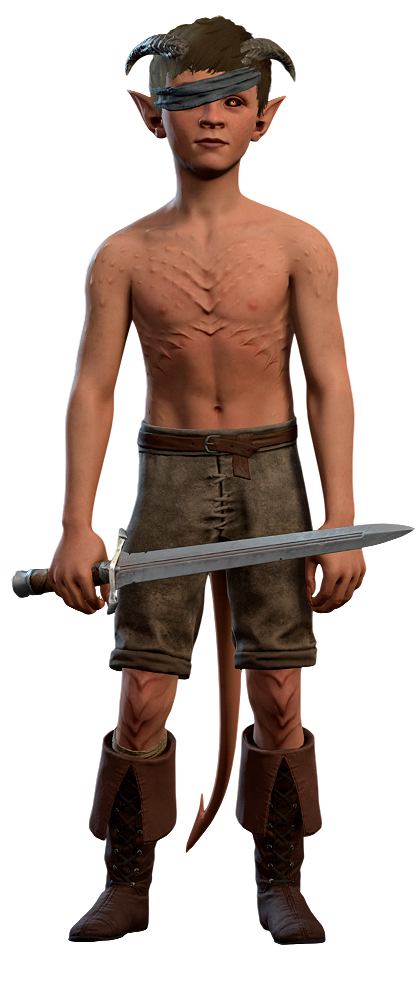 Gan is one of the tiefling refugees sheltering at the Emerald Grove in Act One.