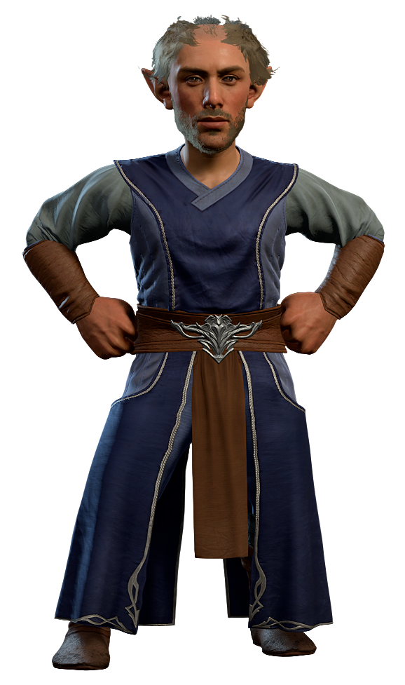 - He has unique dialogue for any Clerics he speaks to for the first time.