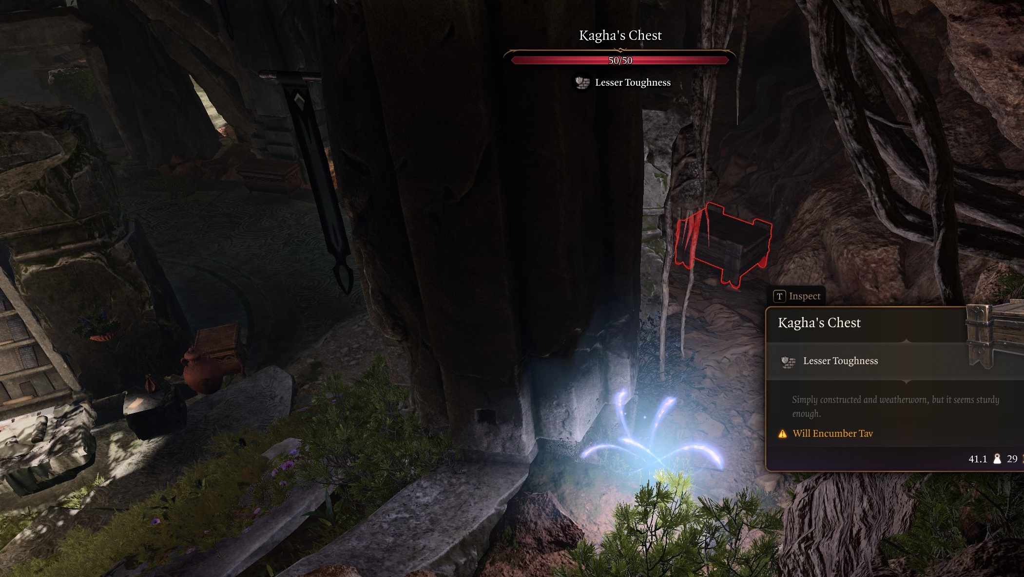 The vital clue required to progress this quest lies in the Half-Torn Note in Kagha's chest at X: -484 Y: -7 in the Emerald Grove. Interacting with the chest is considered a crime, meaning the party must engage with it while out of sight, if they wish to avoid attitude lost. This can be done by hiding and entering turn-based mode, as the chest is tucked away in a dark corner behind a bookcase. The chest is locked and requires a DC 10 Sleight of Hand Check to open. If the party cannot pass the Skill Check, they can alternatively destroy the chest.