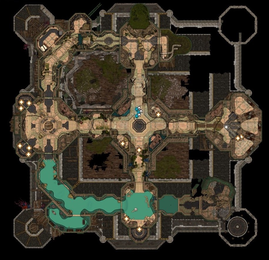 As part of Save the Gondians, there are thirteen Gondians located throughout the prison. Their locations are marked by quest icons on this map, and on the mini-map in game. They take no actions besides Dash which, together with their Glimpse of Freedom condition, allows them to move very quickly.