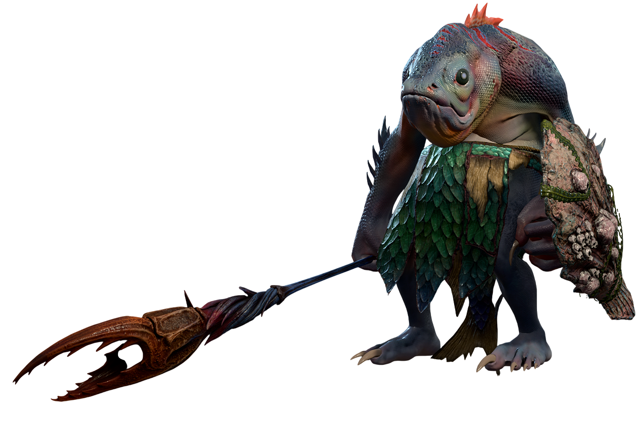 Once inhabiting the shores and islands of the surface world, Kuo-toa now dwell in the Underdark. They are generally cruel and sadistic creatures with a cunning intelligence and have the appearance of fish-like humanoids. Kuo-toa are former mind flayer slaves that have the power to manifest their gods through their own belief.