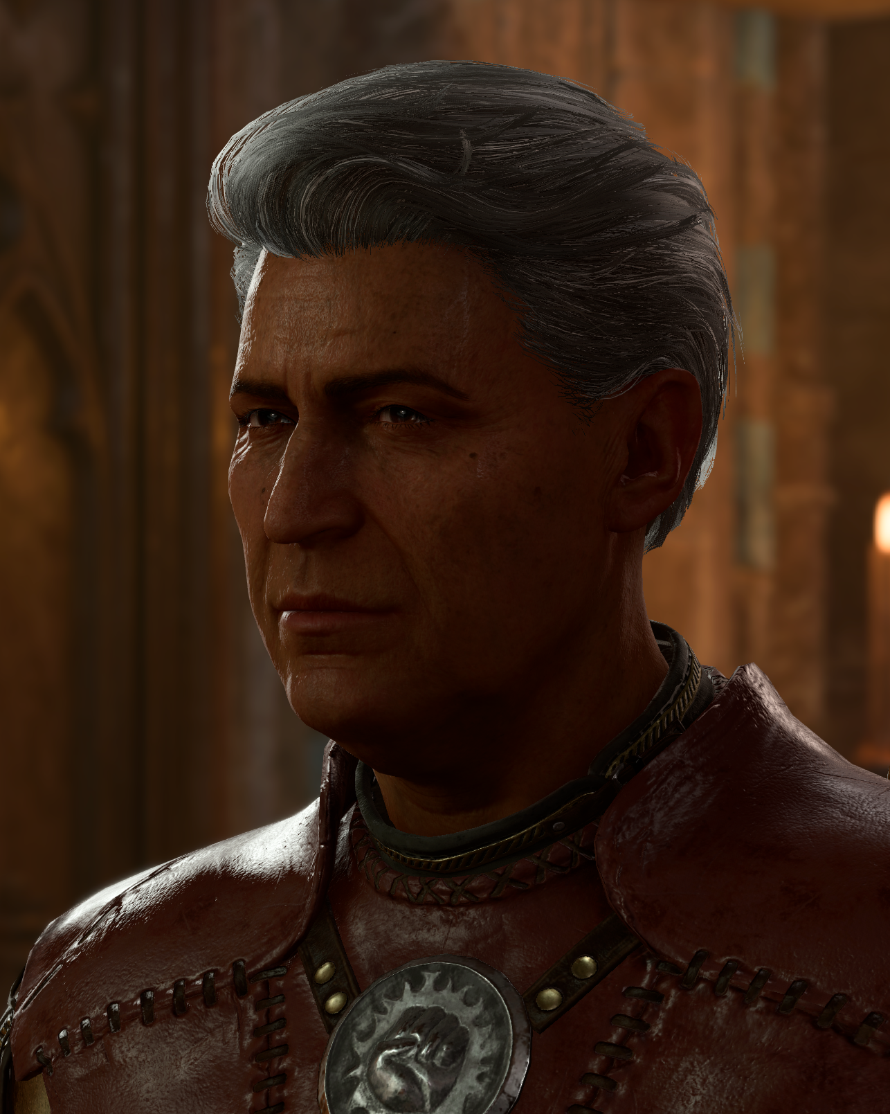 Kyberos with several other Flaming Fists ( Fist Bella, Fist Diallo, Fist Earthdigger, Fist Fernhollow, Fist Klaas and Fist Quickstitch) is standing watch in the Audience Hall of the Wyrm’s Rock Fortress at the ceremony of Enver Gortash being ordained as an Archduke of Baldur's Gate. He is patrolling the southern nave of the hall approximately from X: -12 Y: 195 to X: 12 Y: 193.