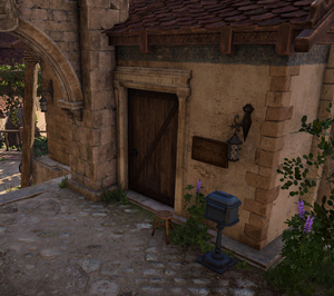 The sign next to the door identifies Lavernica as the groundskeeper of Bloomridge Park. In the north corner of the room is a Cupboard with a list of Park Keeper's Chores on it, a Park Keeper's Journal[1] and Groundskeeper's Hatch Key inside.