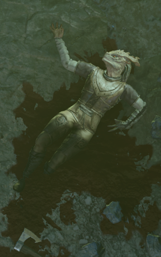 Listelia Dryselis is a Dragonborn smuggler whose body can be found in the Morphic Pool.