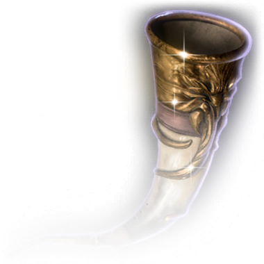 A simple horn belonging to Lump the Enlightened. The mouthpiece is crusty with chunks of dried food.