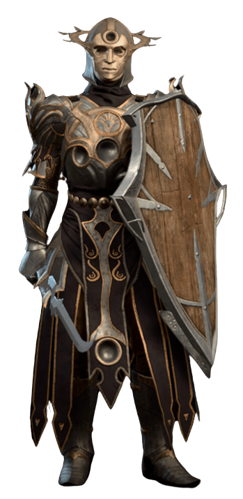 Lyrthindor was a member of Ketheric Thorm's Dark Justiciar army, during the Sharran occupation of Reithwin Town and its surroundings over a hundred years ago. Originally a husband and father, the plague took his family and Lyrthindor turned to Shar in his grief. He was one of many Sharrans who became a Justiciar through completion of the Gauntlet of Shar's trials, reaching the final test wherein he sacrificed the Nightsong.[1]