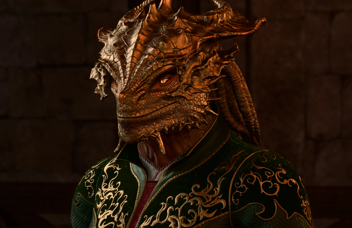 Lyrux Goldthroat is a Bard who is performing in the Guildhall within the Lower City Sewers.
