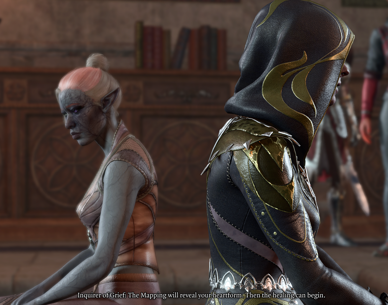 The Mapping of the Heart is a ritual carried out by the Inquisitor of Shar at the House of Grief. The mapping is performed on whoever sits on the stone bench at X: -272 Y: 9. Only one character per run can undergo the Mapping of the Heart. Shadowheart will have a unique interaction with the Inquisitor on the bench and will not complete a typical mapping.