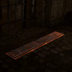 A Marble Plate is a slab of stone hidden upon the surface among similar ones. Technically it is not a trap itself, but an item that might activate a dangerous device (or even a system of connected devices) planted nearby. Stepping on it (and thus exerting pressure on the concealed mechanism) would, for example, trigger a mine or cause any other harmful effect.