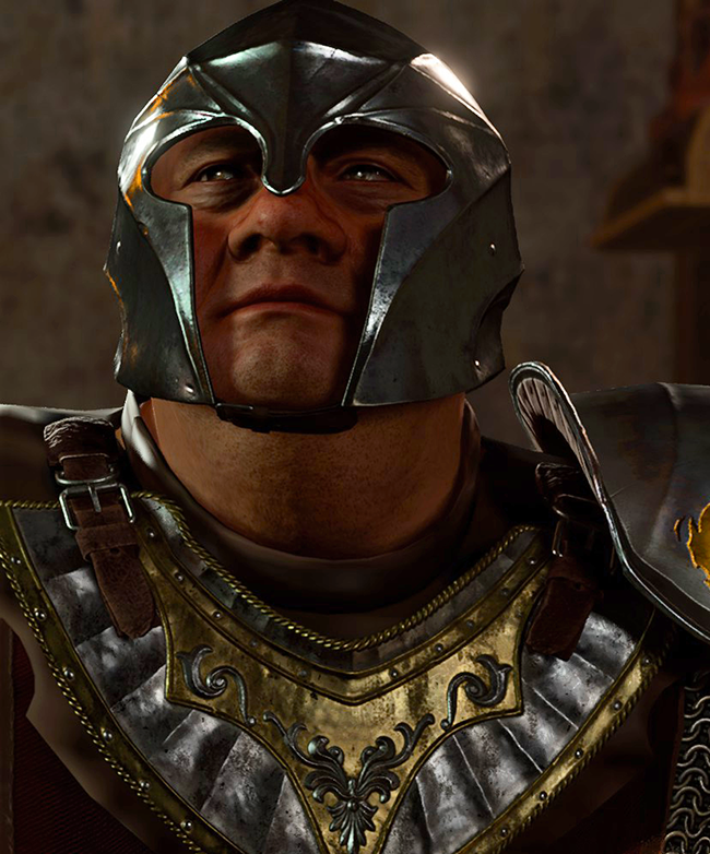 Fist Meadows remains inside the guardhouse at the South Span Checkpoint (which can be entered from the Wyrm's Crossing only). He is accompanied by Fist Azari, who occasionally tries to pick up a conversation with him. However, all his reactions to her chatter, as well as any party member, are limited to undefinable grunting.
