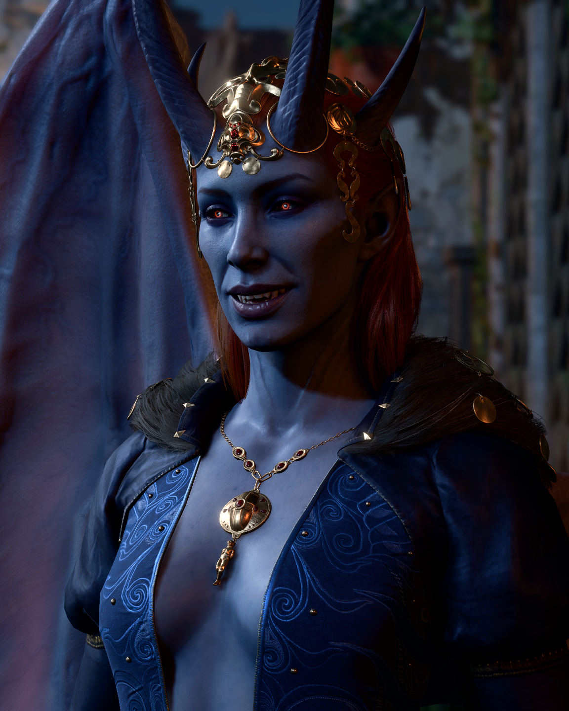 Despite her cruel demeanor, she does display some form of affection towards Zariel, who she always speaks of with a sense of loyalty and devotion and, if Wyll chooses to sacrifice his father in exchange for his freedom, she displays genuine respect for his decision and happiness for him becoming “all grown up.”