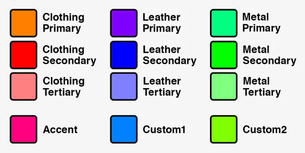 Parameters and corresponding colours inside MSKColor/MSKcloth[edit section | visual editor]