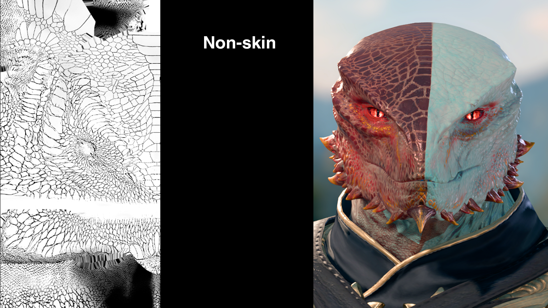 - Red Channel - Non-skin (horns, scales, any keratin parts)