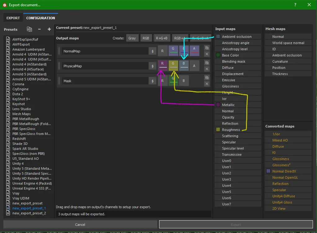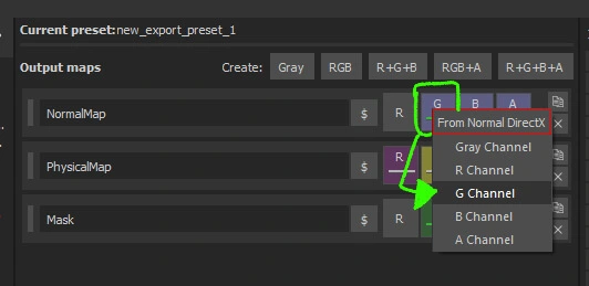 4. On the right, you will see which Input maps you will need to drag and drop onto the Output maps R,G,B and A slots.