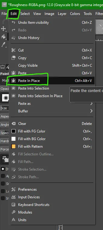 12. In the menu bar, go to "Edit -> Paste In Place" to paste your copied AO map.