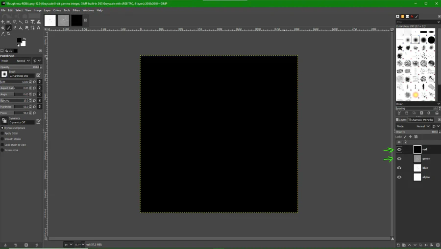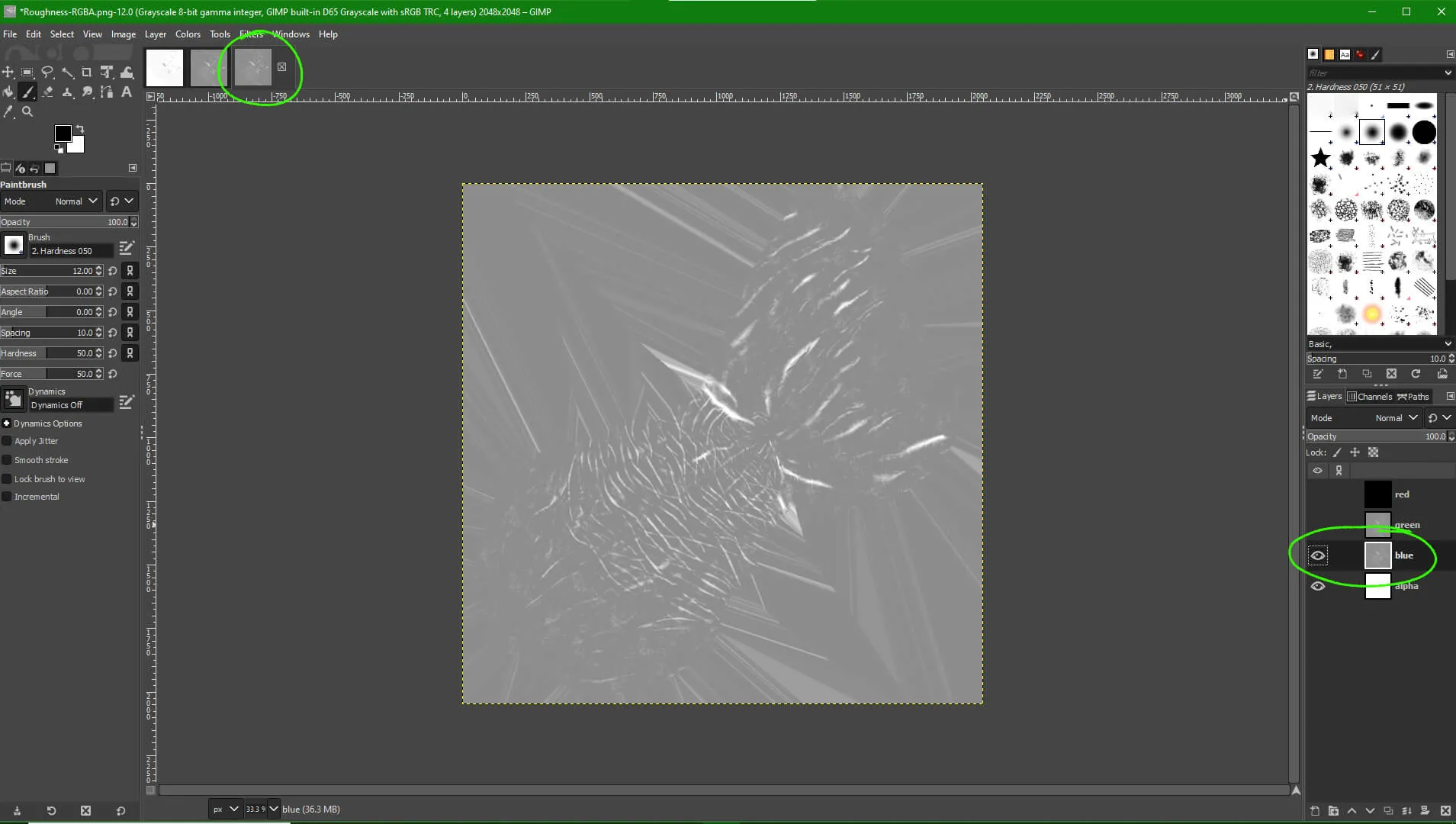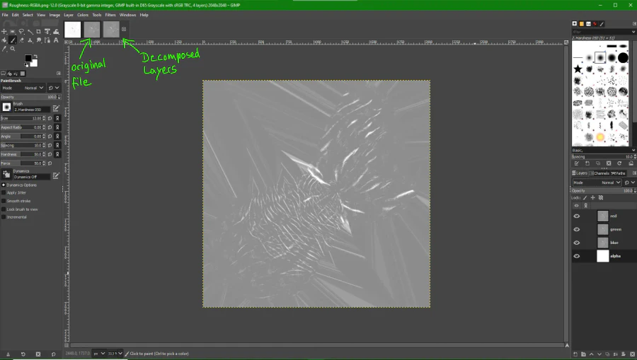 6. You should now see a second file that looks like your roughness map, with each channel as a separate layer.