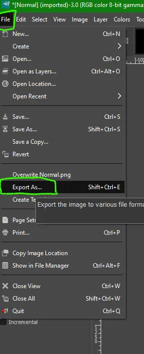 1. Your file is now ready to export. Go to "File -> Export As..."