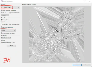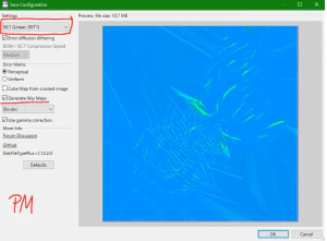 Choose BC1 (Linear,DTX1), make sure Generate Mip Maps is checked