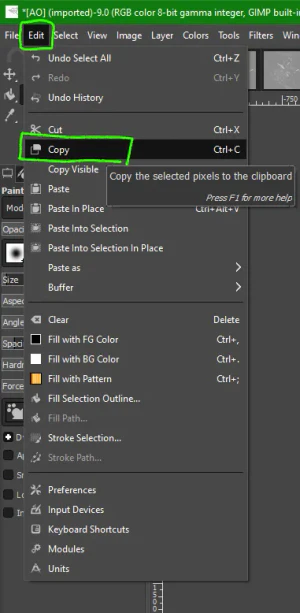 10. In the menu bar, go to "Edit -> Copy" (or hit Ctrl+C) to copy your AO map image.