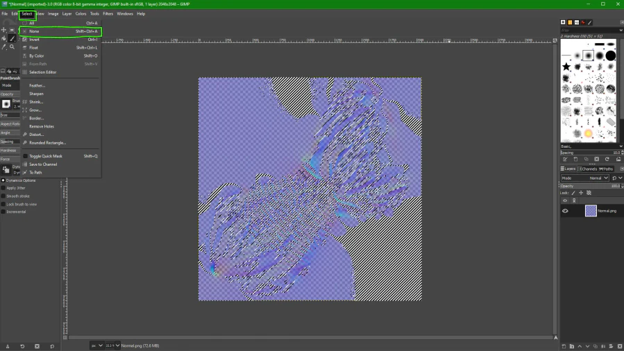 5. Deselect your image by going to "Select -> None" in the menu bar.