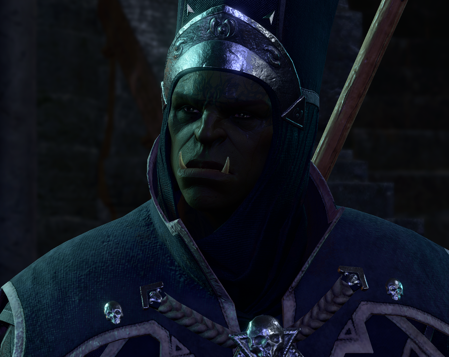 Mola is first encountered in the Moonrise Towers throne room, standing guard over the trial presided by Ketheric Thorm. After the trial ends, Mola moves to the study behind the throne room alongside Zealot Rylveth.
