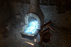 Inside the apothecary, the party can gather some alchemical ingredients and potions, including a Potion of Sleep, which cannot be crafted from the game alchemy menu. Interacting with the old cauldron prompts a DC 10 Medicine Check. Succeess reveals that it was used not only for the apothecary means, but for brewing powerful potions, as well.