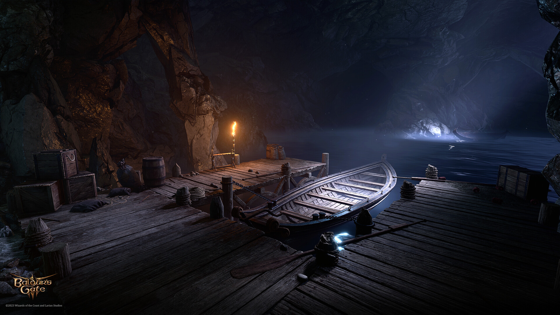 In the dock a Rowboat is moored with two Brittle Chains, vulnerable to Bludgeoning and to Acid. Around the boat, several Clubs lie in disarray. If the prisoners break out into the tunnels, they run towards the dock. Upon reaching the boat, they grab the clubs and try to break the chains. If successful, they flee on the boat.